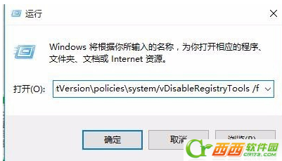 2、输入 reg.exe delete HKEY_CURRENT_USERSoftwareMicrosoftWindowsCurrentVersionpoliciessystem/vDisableRegistryTools /f 然后点击确定即可解锁注册表