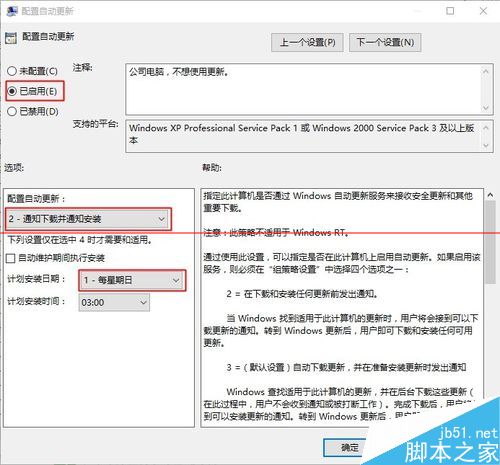 2、在打开的界面左边您可以看到“计算机配置”按照以下树状图依次查找:“计算机配置>>管理模板>>Windows更新>>配置自动更新”,右击“编辑”选择“已启动”并同时选择“2 - 通知下载并通知安装”,推荐选择图上的“1”确保后顾。