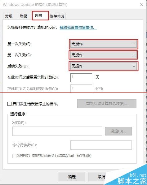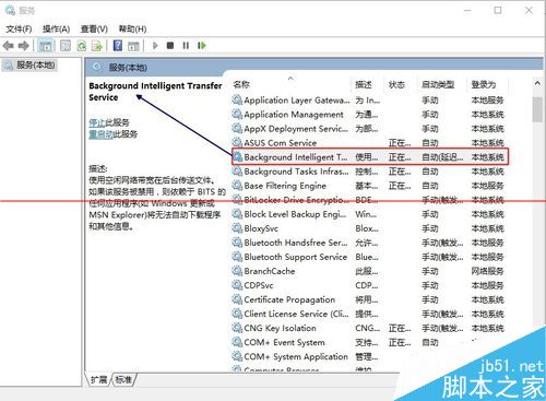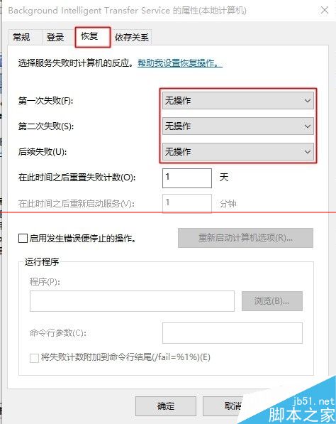 2、在如图界面上我们可以找到”Windows Update“和“Background Intelligent Transfor Service”并右击”属性(R)“在“常规”和“恢复”选项卡中如图设置。