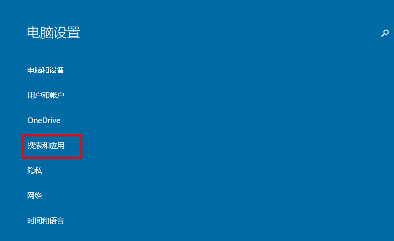 在”电脑设置“中我们选择”搜索和应用“