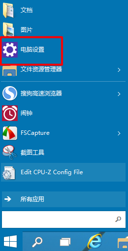 在弹出的菜单中我们选择”电脑设置“