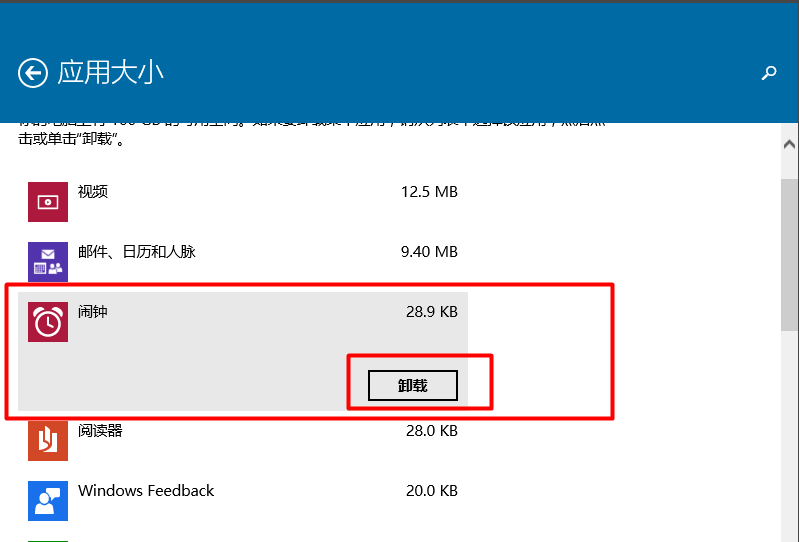 在”应用大小“中我们可以看到我们安装的应用。
