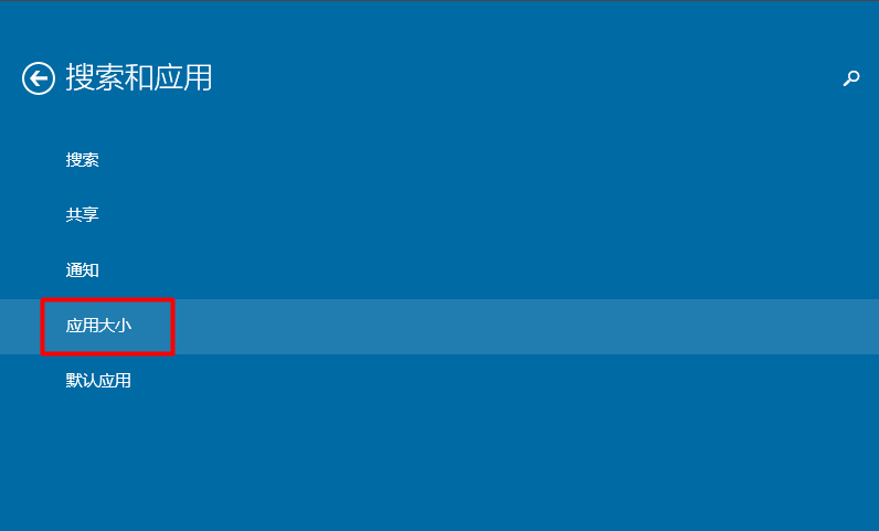 在”搜索和应用“中我们选择”应用大小“