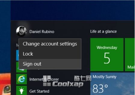 现在,请注销Windows 10,并重新登陆。开始菜单>选择你的相片>选择“注销”