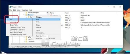 如果你找不到 Personalize子项的话,在Themes上单击鼠标右键,选择新建>项,并取名Personalize。