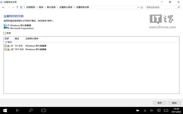 ▲控制面板中的文件关联中照片查看器只能选择与tiff文件进行关联