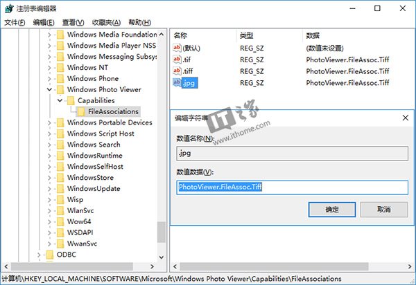 其他类型图片设置方法同上,在添加注册表键值时,数值数据一律填写为“PhotoViewer.FileAssoc.Tiff”。