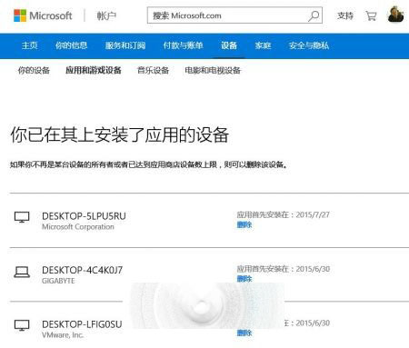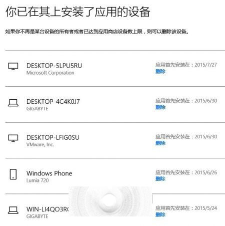Win10正式版应用商店做了调整,应用下边明确标注着,同一账户购买后,最多只能安装到10台设备上,包括PC、平板、手机在内。如果超过10台以上设备,用户就无法继续安装Win10应用,那如何删除旧设备呢?