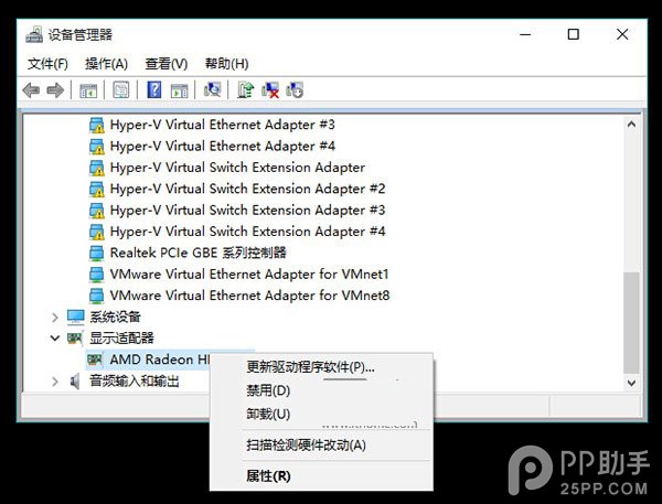 ▲找到显卡,在右键菜单中禁用显卡或卸载显卡驱动