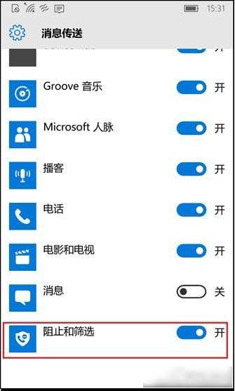 进入【设置】->【隐私】->【消息传送】,将“阻止和筛选” 应用打开。(默认情况下“阻止和筛选”应用是开启的,请先关闭设置,再打开设置,保证骚扰拦截应用可以正常使用)