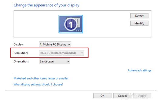 1、桌面右键选择“屏幕分辨率”,在分辨率位置显示灰色,无法任意调节。