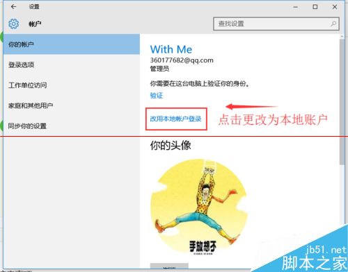 7、点击“改为本地账户登录”,一般情况下,是由于设置了联网账户(非本地账户)造成凭据验证失败。所以切换之后,便可正常。(如果你本来就是本地账户,建议重启之后测试仍旧失败,可继续尝试切换为联网账户)