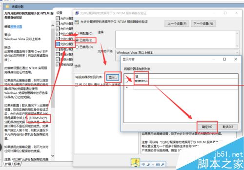 4、单击“启用”→继续单击“启用”→输入“TERMSRV/*”→确定