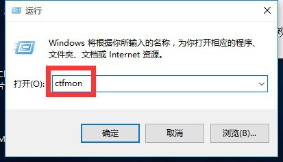 2、从打开的“运行”窗口中,输入命令“ctfmon”并按回车键进行确定,此时输入法将重新加载。