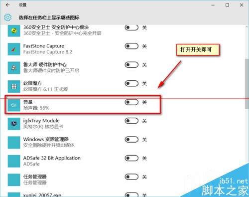 8、弹出下面的窗口,在这个窗口中找到音量选项,将其后面的开关打开即可