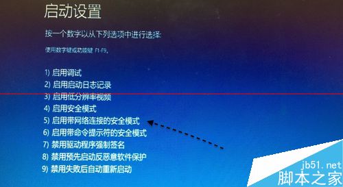 9、如果想要进入带有网络连接的安全模式,请根据屏幕上的提示按下数字5键,即可进入。