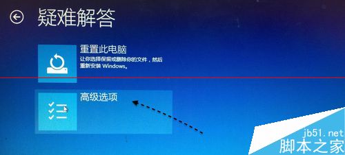 5、屏幕上会出现高级选项,点击“疑难解答”一栏,