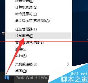 1、右击桌面左下角的“Windows”按钮,从其右键菜单中选择“控制面板”项。