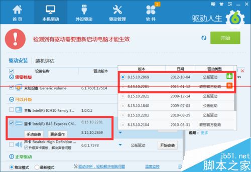 5、接下来我们需要更新一下显卡驱动程序。建议大家使用“驱动人生6“来更新Windows10正式版驱动程序。在程序主界面中,切换到“本机驱动”选项卡,选择最新的显卡驱动版本号,点击“立即修复”按钮即可修复显卡驱动。