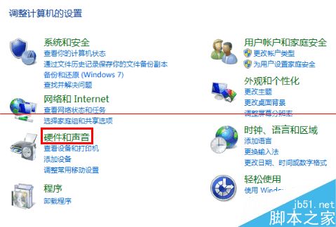 1、右击屏幕左下角的Win徽标,点击“控制面板”。在控制面板中点击“硬件和声音”。
