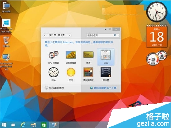 温馨提示:这里由于Win10系统DWM(桌面窗口管理器)以及Aero主题的改变,原来毛玻璃透明效果的小工具窗口显示或有错误,比如像上图这样左右不同色。不过,这并不影响这些小工具的使用。