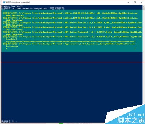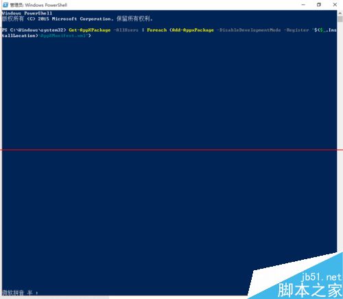 2、执行以下代码:Get-AppXPackage -AllUsers | Foreach {Add-AppxPackage -DisableDevelopmentMode -Register "$($_.InstallLocation)AppXManifest.xml"}