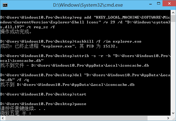 attrib -s -r -h “%userprofile%AppDataLocaliconcache.db”