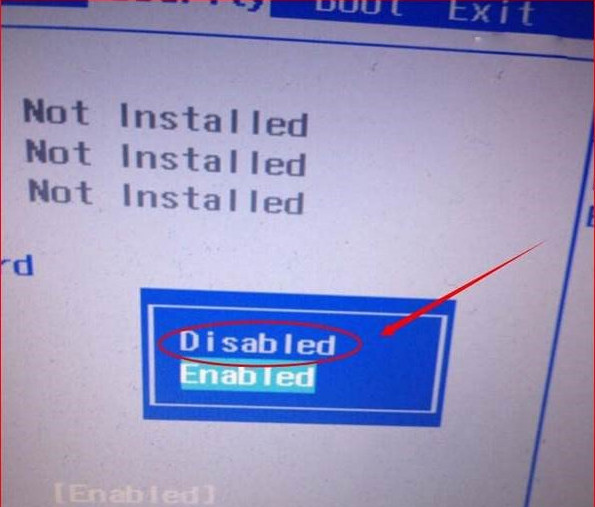 再按键盘上下键,选中“Disabled”,意思是关闭SecureBoot,选中后按回车键,然后按“F10”键并按回车键确认则保存BIOS配置。