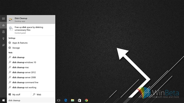 首先你需要在屏幕左下角的Cortana搜索框里键入“Disk Cleanup”命令并运行它。