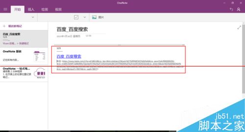 6、在windows 10系统的开始菜单中找到“OneNote图标,点击进入后,您可以看到您刚才使用OneNote软件分享的网页以及相应的文字内容。