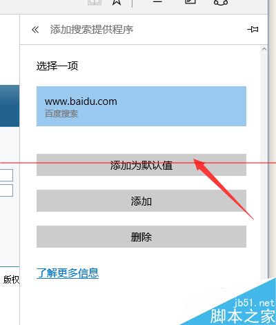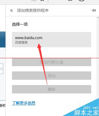 5、这样,Edge浏览器的默认搜索引擎就是百度了