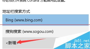3、找到“地址栏搜索方式”项目,点击它并选择“新增”;