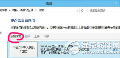 然后,选中含有微软拼音输入法的语言,点击"下移"