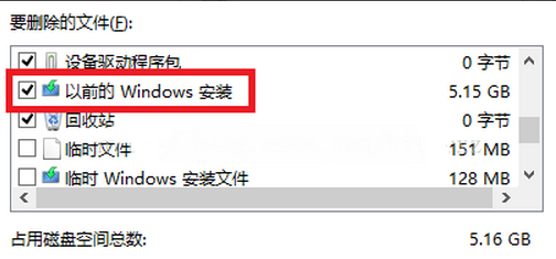 扫描完成后,在弹出的窗口中,找到“以前的windows安装”,把这一项前面打√,这时确定清理。