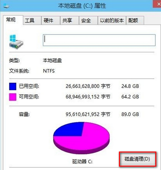 这时会出现以下图示,直接选择“磁盘清理”,系统会进行扫描,请耐心等待几分钟