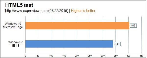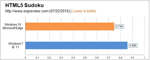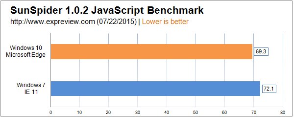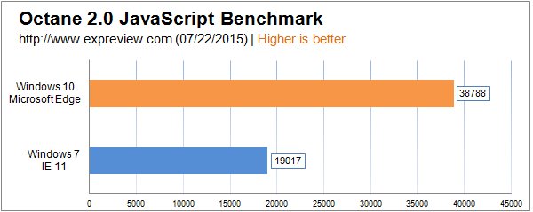 微软Edge浏览器仅支持Windows 10系统,所以这项对比中Windows 7只能继续使用Internet Explorer11浏览器,测试的都是HTML5与JavaScript相关项目。