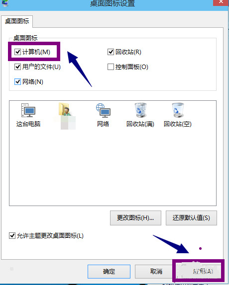 将我的计算机勾选上然后点击“应用”,如下图所示