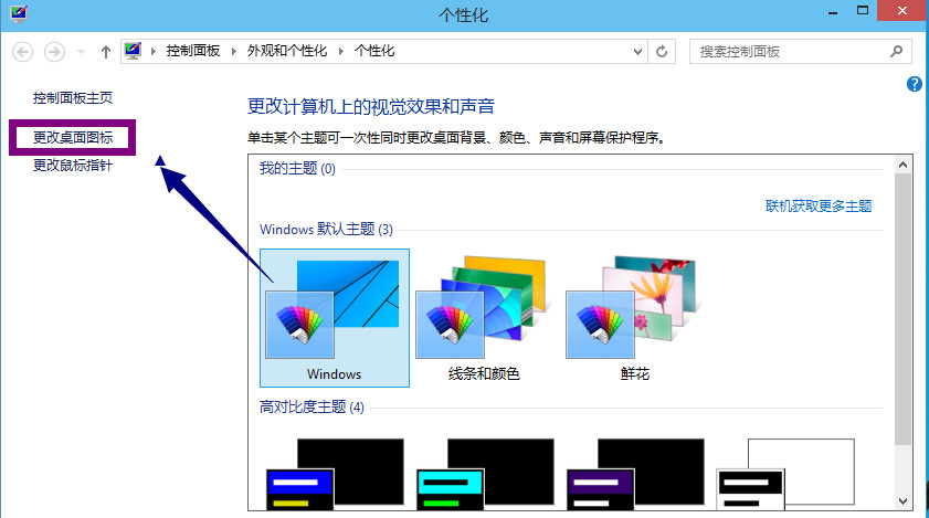 点击更改桌面图标,如下图所示