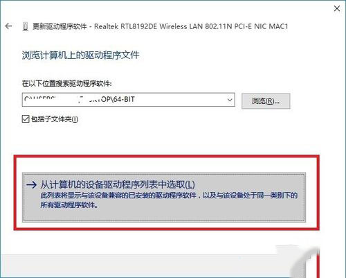 1、右键点,Realtek RTL8192DE Wireless LAN 802.11N PCI-E NIC MAC1,然后选择“更新驱动程序软件”后,点“浏览计算机以查找驱动程序软件”;