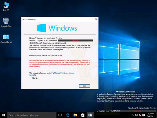Win10预览版10163承接此前推送的10162,看起来并没有明显的变化,因此微软更看重Bug修复和性能提升。而且俄罗斯爆料大神WZor本次展示的版本是Win10 Insider家庭预览版。