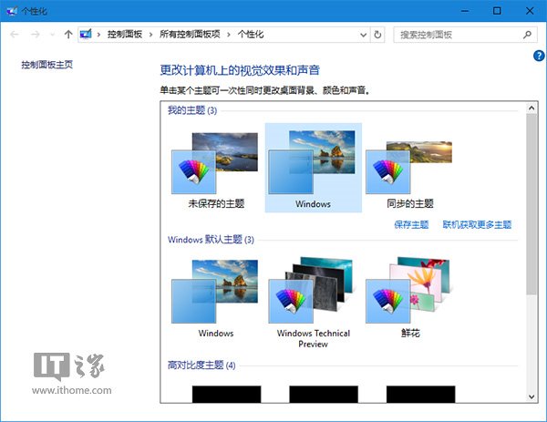 若想回到Win10默认标题栏样式,切换到其他任何默认主题即可。