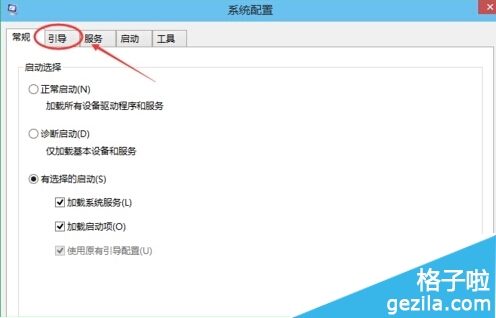 2.点击打开系统配置窗口,选择引导选项卡,如下图所示。