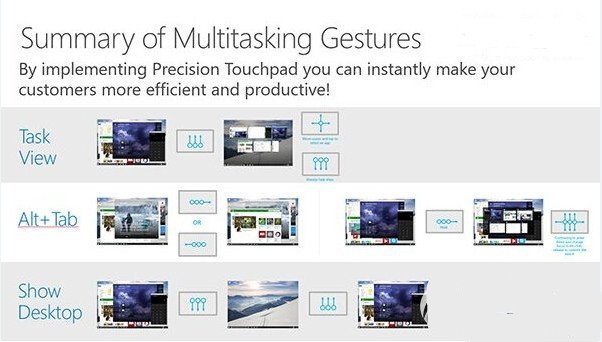 此外微软也在WinHEC会上现场演示了针对触屏与触控板新增的多种操控手势,具体如下: