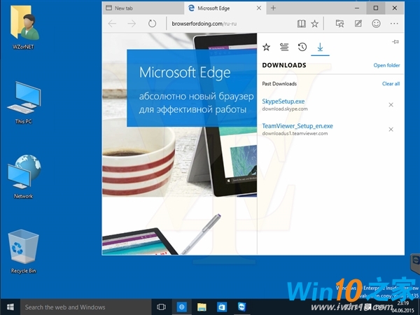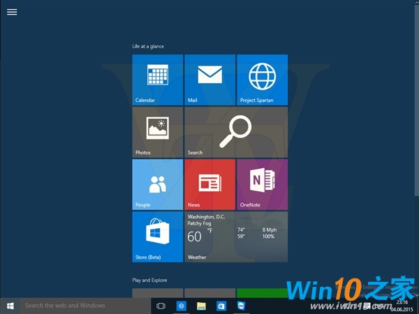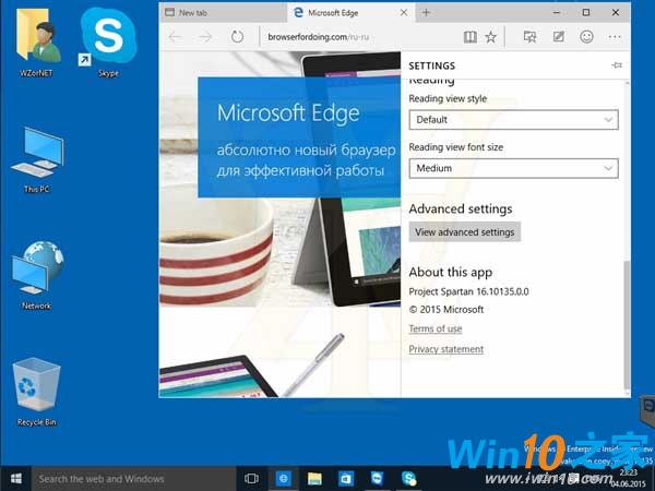 从截图上来看,该版本与此前的10130没有太大差别,浏览器依旧被冠以“Project Spartan”代号,图标也丝毫没有改变。不过我们可以看到这一版本中已经集成了Skype软件,截图工具功能也有所增强。