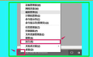 右键点击系统桌面左下角的开始,在右键菜单中左键点击:运行;