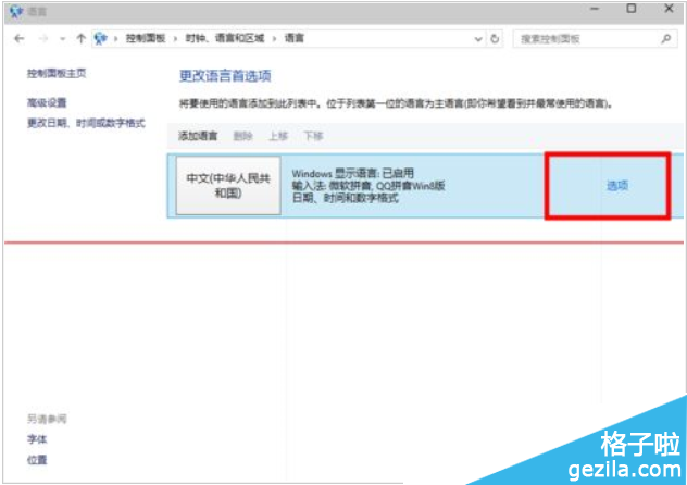 4、在“语言”窗口 我们点击“选项”