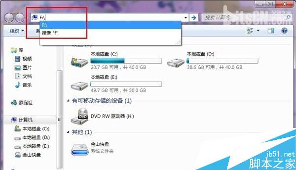 5、魔方电脑大师的这个设置很简单,而且很关键的一点,就是如果你自己想访问被隐藏的硬盘分区时,直接在我的电脑地址栏中输入硬盘分区的盘符号加冒号,就可以访问了。如下图所示,直接输入f:就能照常打开F盘了。