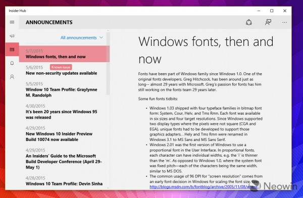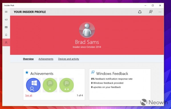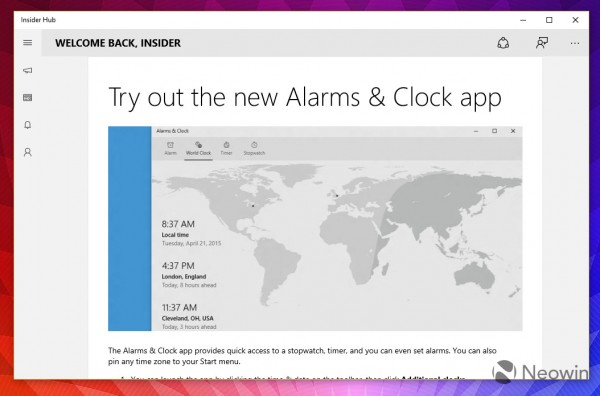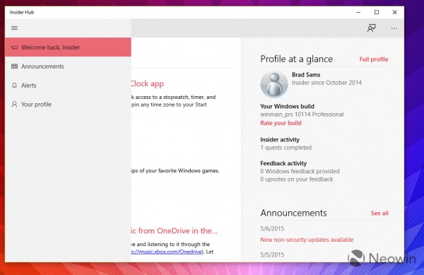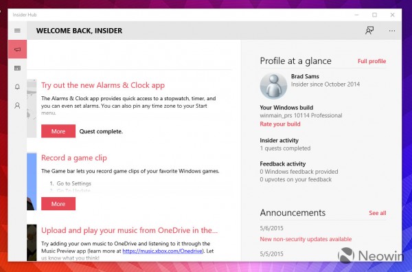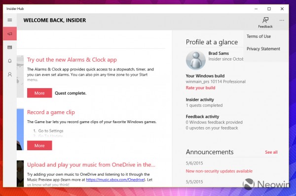 下面是Windows 10 Build 10114中的新版Insider Hub: