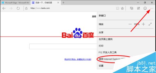 2、在弹出的菜单中选择"使用Internet explorer打开"