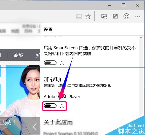 7、为什么我用斯巴达浏览器无法打开QQ农场等Flash游戏呢,或者打开在线视提示无法加载成功呢?那是因为Flash Player没有开启所致,怎么打开Flash功能呢?在选项里拉到最底下找到Adobe Flash Player选项,点击开关为启用状态,重新打开斯巴达浏览器就正常了
